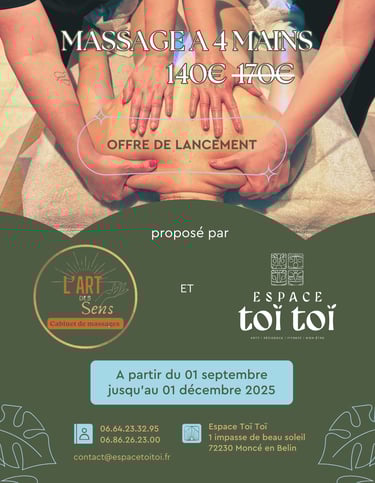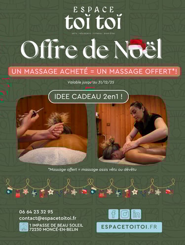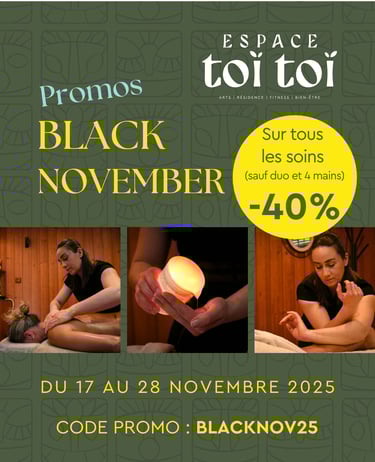 Du Lundi 17 au vendredi 28 novembre, profitez de 40% de réduction sur tous nos massages (hors duo et 4 mains)
