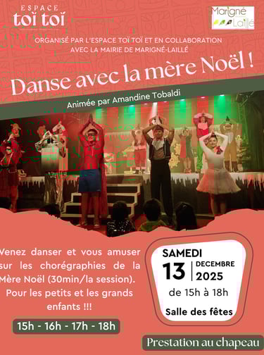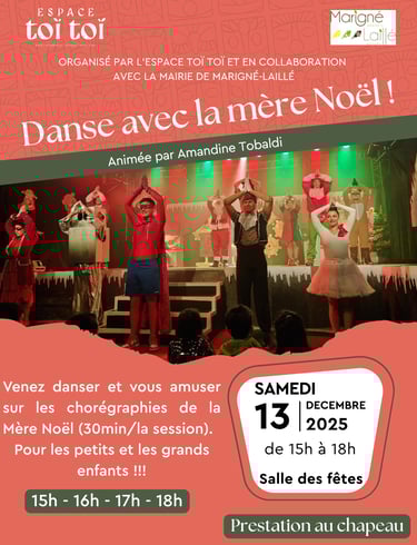 Le samedi 13 décembre 2025, à l'occasion du Marché de Noël à Marigné Laillé, la mère Noël vous fera danser !!!